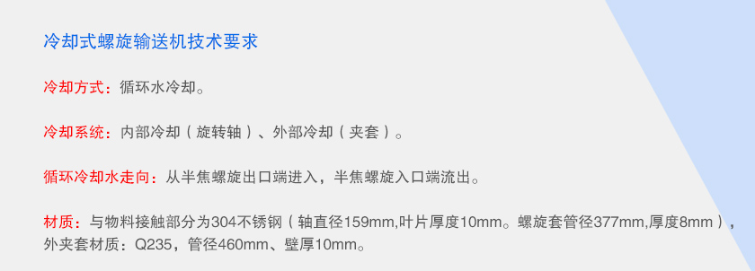 要求:輸送量每小時大于6m³,輸送物料進入螺旋入口時溫度為450℃, 出料時溫度需降至100℃以內(nèi)。