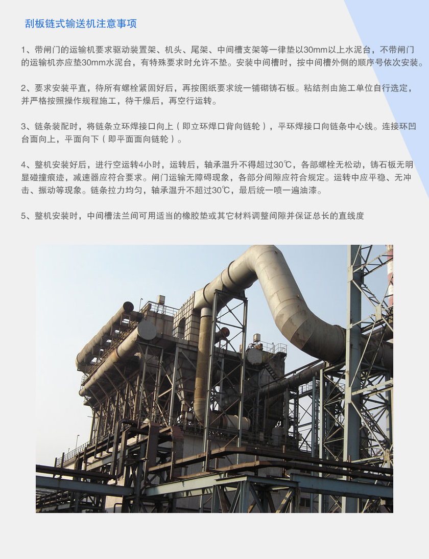 4、整機安裝好后,進行空運轉(zhuǎn)4小時,運轉(zhuǎn)后,軸承溫升不得超過30℃,各部螺栓無松動,鑄石板無明顯碰撞痕跡,減速器應(yīng)符合要求。閘門運輸無障礙現(xiàn)象,各部分間隙應(yīng)符合規(guī)定。運轉(zhuǎn)中應(yīng)平穩(wěn)、無沖擊、振動等現(xiàn)象。鏈條拉力均勻,軸承溫升不超過30℃,最后統(tǒng)一噴一遍油漆。