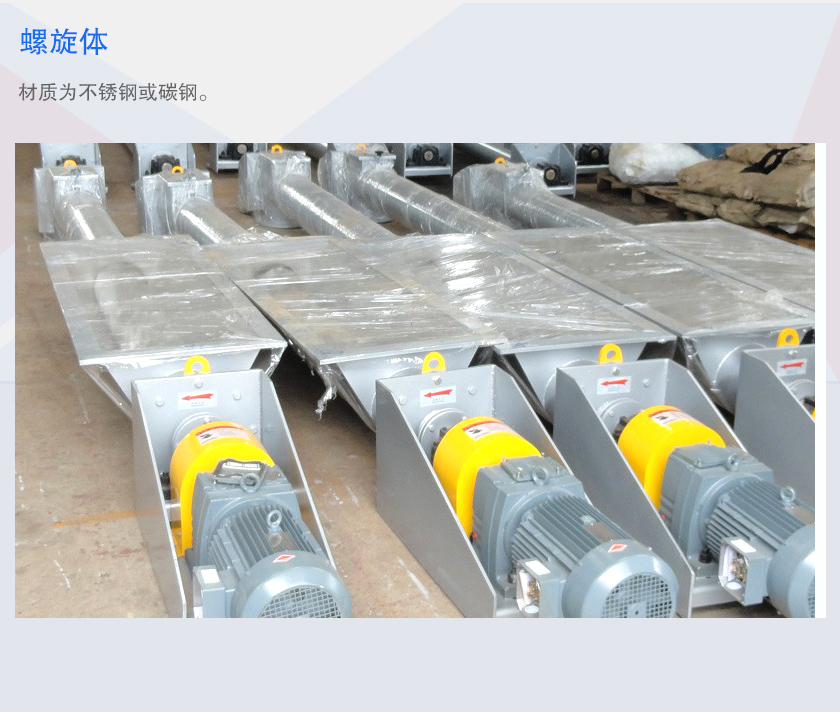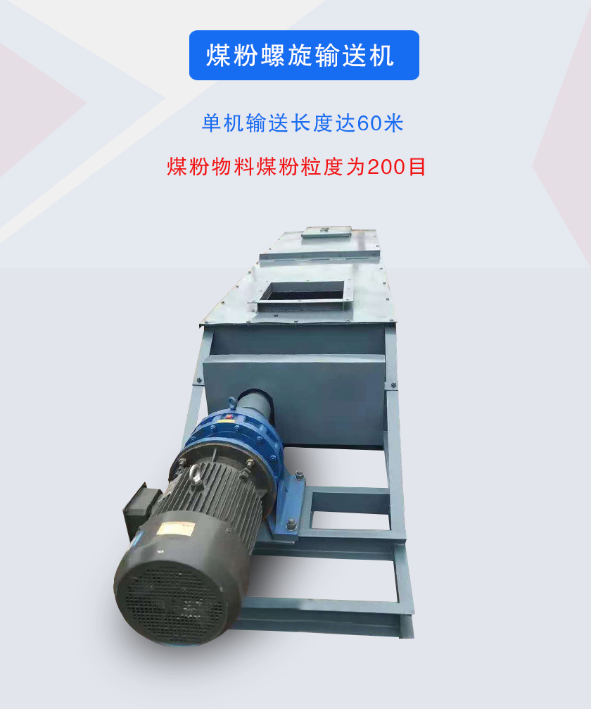 煤粉螺旋輸送機是由驅動裝置、中間軸承、螺旋軸、螺旋機本體、螺旋葉片、頭節、中間節、尾節、進、出料裝置等部件組成。