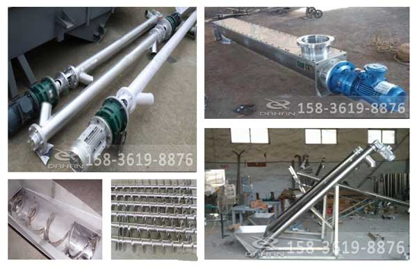 不銹鋼螺旋輸送機的幾種工作方法: 重力滑下法。螺旋輸送機螺旋的轉(zhuǎn)速較低,在螺旋面上的物料受到重力的影響遠(yuǎn)比離心力的影響大,由于螺旋的轉(zhuǎn)動物料不斷沿螺旋面向下滑,于是產(chǎn)生軸向的位移,cx螺旋機基本上屬于此種原理。此種原理的螺旋機的填充系數(shù)值一般都小于05。因為充填過多,物料不是沿螺旋面滑下,而是被螺旋的攪動使它翻越螺旋軸落下,并不能獲得大的軸向速度。既然慢速螺旋的物料受重力的影響較大,顯然它不能用于垂直螺旋或傾斜角較大的向上輸送情況。 滑下法原理,雖然廿值小,輸送能力低,但物料處于輕松散的自由滾落的狀態(tài),較少受到擠壓,適用于易結(jié)塊、磨琢性大的物料。當(dāng)采用標(biāo)準(zhǔn)螺旋時,不但能保持較快的滑下速度,并且對傾斜輸送有一定的適應(yīng)能力(傾角一般在20°以內(nèi))。 推擠法。此法用于倉底的卸料輸送螺旋,物料經(jīng)常充滿螺旋,顆粒物料受到的靜壓較大,每粒物料本身的重力遠(yuǎn)小于其他作用力(螺旋推力、摩擦力、靜壓力)。此種螺旋的阻力是很大的,它要克服較大壓力下形成的摩擦力。工作時物料好象是螺母,螺旋起螺釘似的作用,只要螺母不轉(zhuǎn)動(或轉(zhuǎn)動較慢),利用螺釘?shù)男D(zhuǎn),就可以使螺母沿軸向移動,倉底卸料螺旋常采用變節(jié)距螺旋,在出口端的節(jié)距較大。 離心誘導(dǎo)法。用于垂直的傾斜度較陡的螺旋輸送機,或轉(zhuǎn)速較高的螺旋輸送機,其工作特點是物料充填量介于兩種之間,在螺旋的高轉(zhuǎn)速下,松散的物料受到離心力的作用遠(yuǎn)比重力等其他外力的影響大。