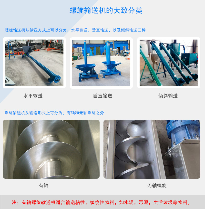 注:有軸螺旋輸送機適合輸送粘性,纏繞性物料,如水泥,污泥,生活垃圾等物料。